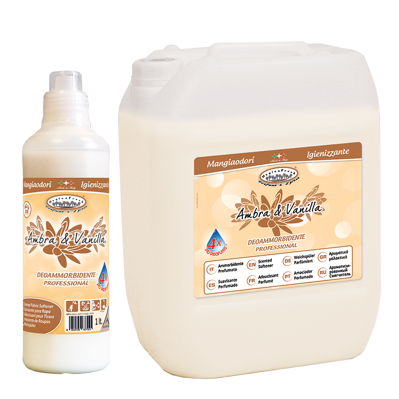 Amber & Vanilla Fabric Softener: Warmth, Elegance, and Enveloping Fragrance Warm and enveloping, the Amber & Vanilla fragrance combines the sweet sensuality of vanilla with the exotic and floral notes of the tiaré flower. A fabric softener that transforms every wash into a moment of well-being, leaving fabrics with a fragrant trail that pampers and enchants the senses. Perfect for those who want laundry that’s not only soft but also elegant and aromatic. Main Features: Amber & Vanilla is more than a fabric softener: it’s a ritual of comfort and beauty for your laundry. |