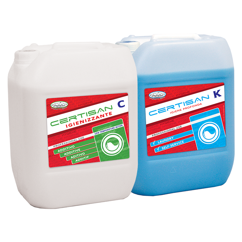 • CERTISAN C – Bidon 20kgAdditif peracétique hygiénisant professionnel compatible avec tous les lavages et avec tous les tissus. • CERTISAN K – Bidon 20kgAdditif quaternaire hygiénisant et parfumé compatible avec tous les lavages et avec tous les tissus. |