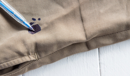 Taches non hydrophiles et éliminables avec des solvants (stylo, colle, vernis à ongles, rouge à lèvres, etc...)