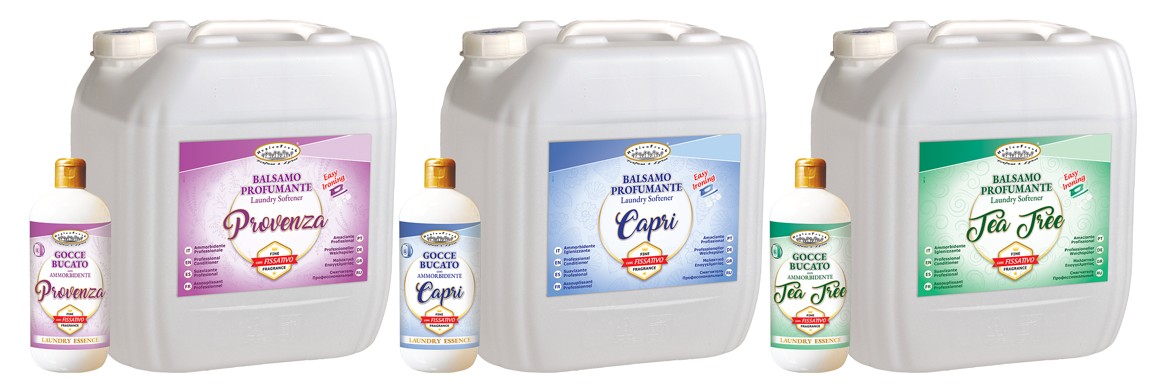 FORMULA ENRICHED WITH FRAGRANCE FIXATIVEThe fragrance fixative that both products contain is composed of special active ingredients, which have been specifically developed to stick to clothes and make the perfume last even longer!The fragrance will be released slowly and gradually, so the effect of freshly washed clothes will last longer, thus ensuring a constant and pleasant sensation of fresh cleanliness! AVAILABLE IN 3 ENCHANTING FRAGRANCES: