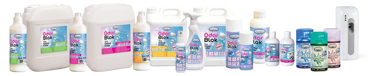 HygienFresh OdorBlok line includes a wide range of multifunctional odour-eliminating products, which are available in big sizes for professional use and in small sizes for home use!