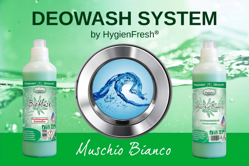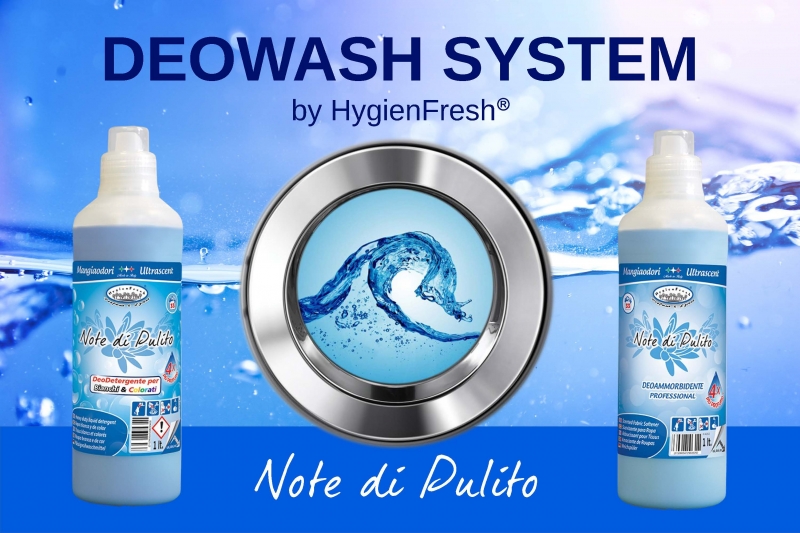 The DeoWash system combines detergents and softeners with the same fragrance, by giving a perfect laundry, a soft and delicate “touch” and a heady fragrance.